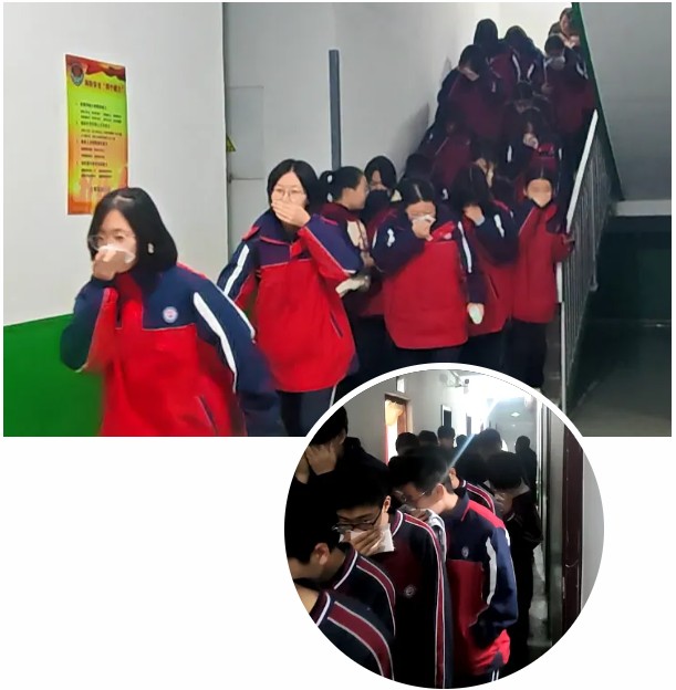 值班老师迅速到达指定岗位,沉着冷静地指挥学生撤离。同学们在老师的引导下,严格按照“掩住口鼻、弯腰前行、有序小跑”的逃生要领,沿着预定的疏散路线,快速、有序地从各楼层向操场安全地带集结。