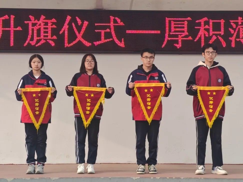 随后,教育中心公布了初中部、高中部上周量化考核结果,并表彰了各星级优秀宿舍,鼓励大家“把流动红旗变成‘常驻红旗’”。
