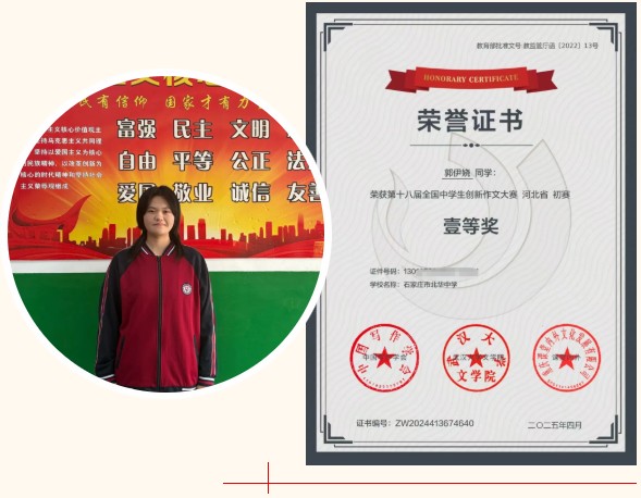 全国中学生创新作文大赛旨在激发青少年学生的创作热情、培养创新思维和文学素养。我校一直高度重视学生综合素质的培养,鼓励学生积极参与各类文学活动,提升写作能力和人文修养。此次优异成绩的取得,充分展现了我校学子的文学才华和学校在素质教育方面的丰硕成果。