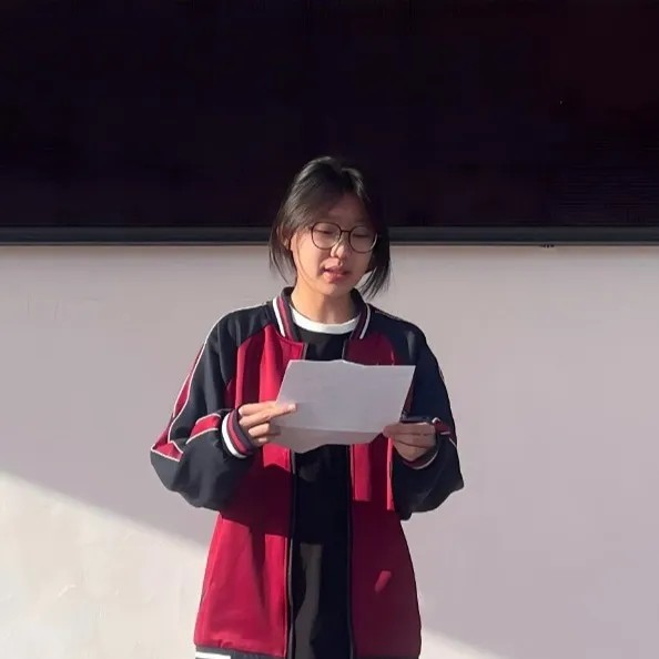 高二四班王雨涵同学发表了题为《踏新岁增才干,履责任勇担当》的演讲。她向全体同学发出倡议: