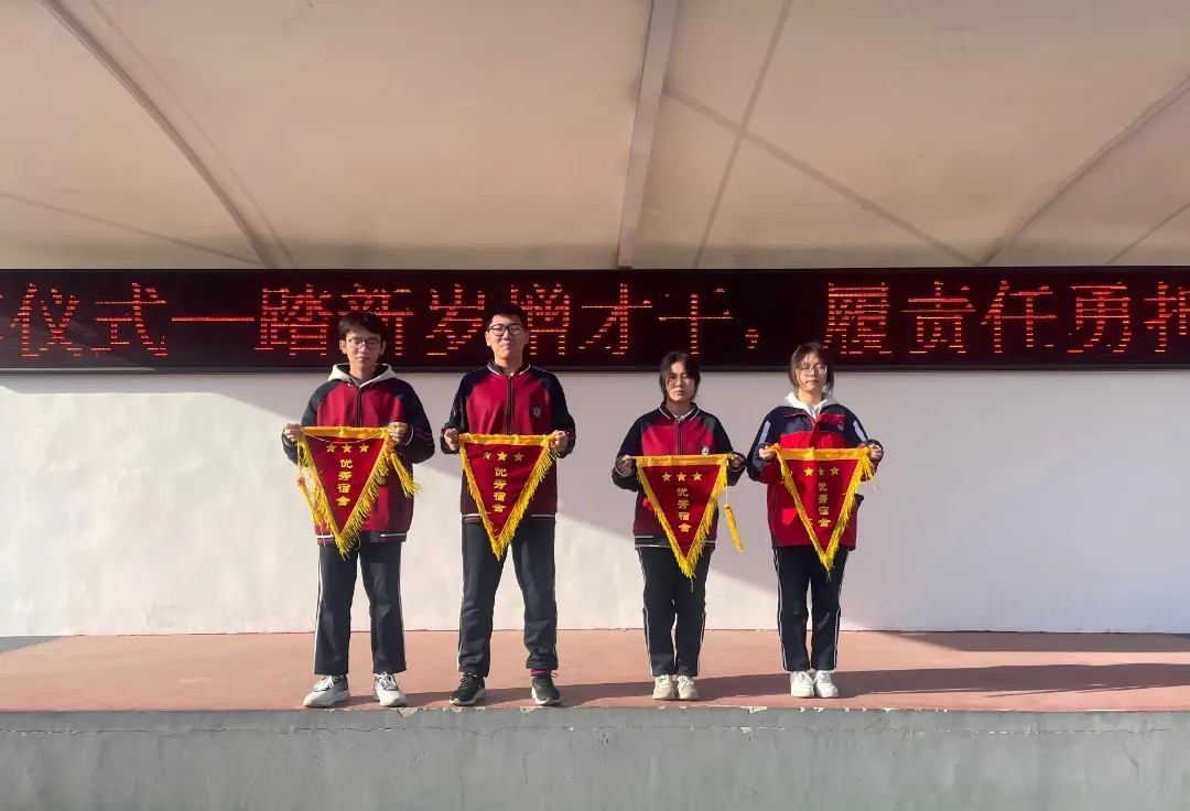 新岁已至,征程未止。站在新年的崭新坐标,让我们以这面飘扬的国旗为指引:把“增才干”刻进每一堂课的专注听讲里,融于每一次作业的严谨思考中,淬在每一场实践的躬身实干内。把“勇担当”落在维护班级荣誉的点滴行动上,显在守护宿舍整洁的自觉自律中,扛在坚守校园安全的责任担当里。