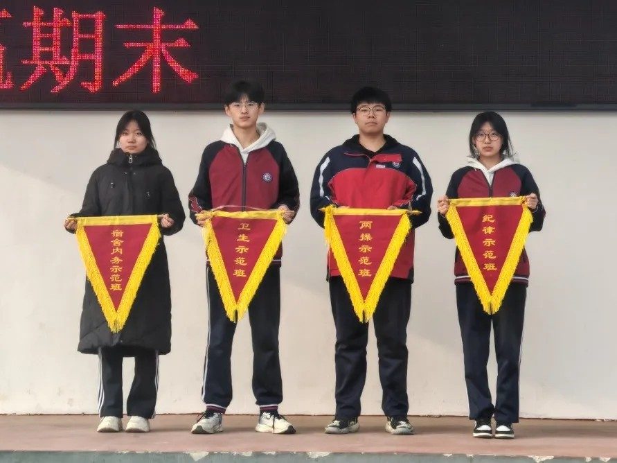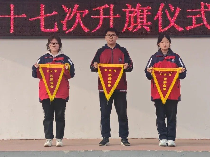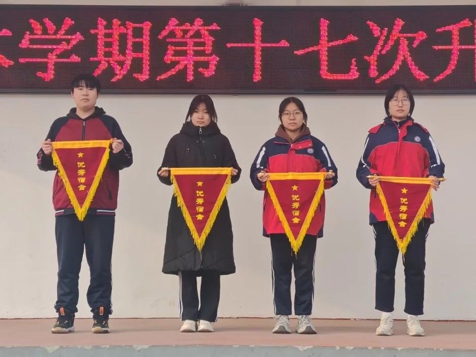 随后,教育中心公布了初中部、高中部上周量化考核结果,并表彰了各星级优秀宿舍,鼓励大家“把流动红旗变成‘常驻红旗’”。